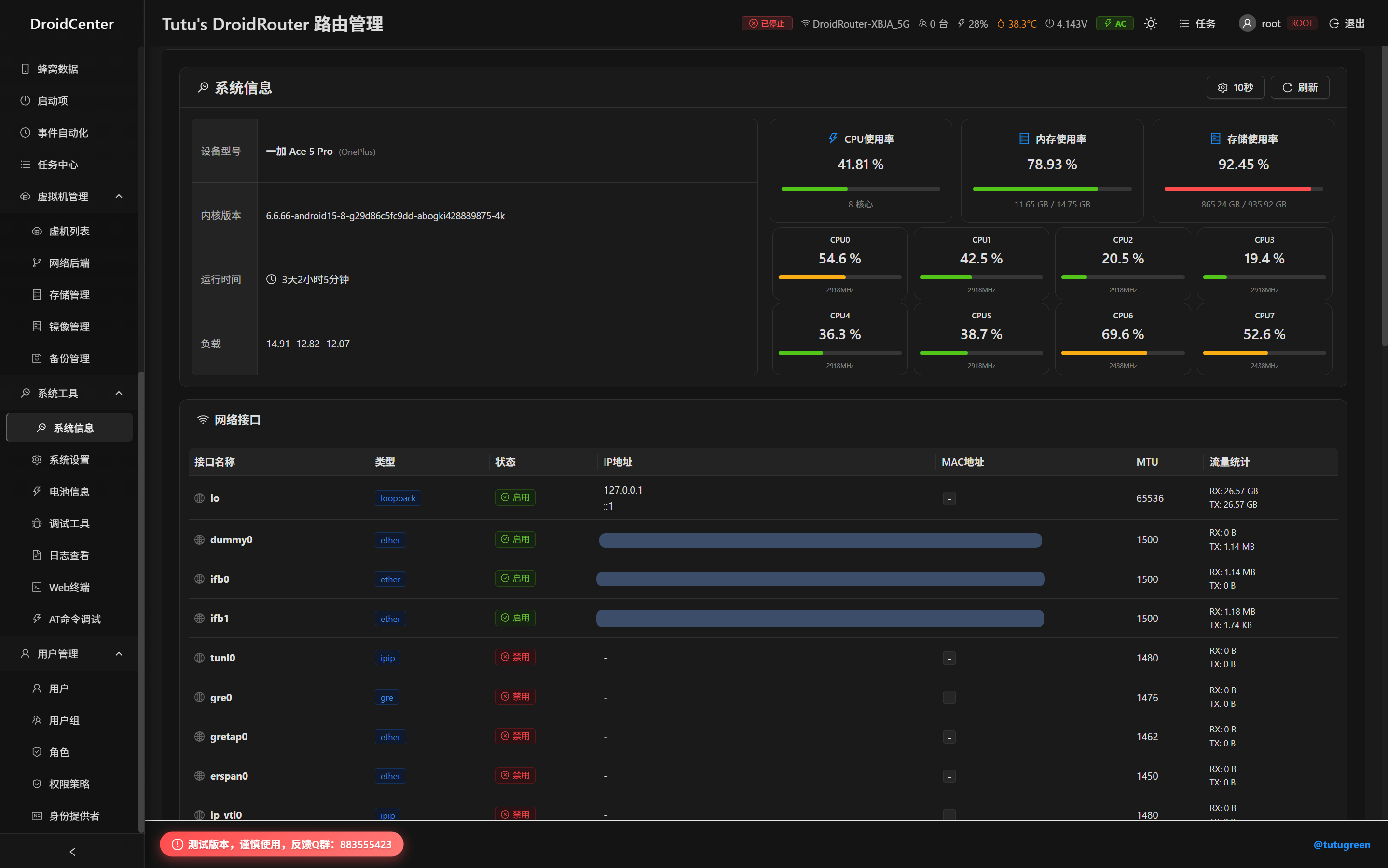 整了个 安卓 x 软路由 x 三频满血双发热点 x 虚拟机 AIO 管理平台 DroidRouter / DroidCenter